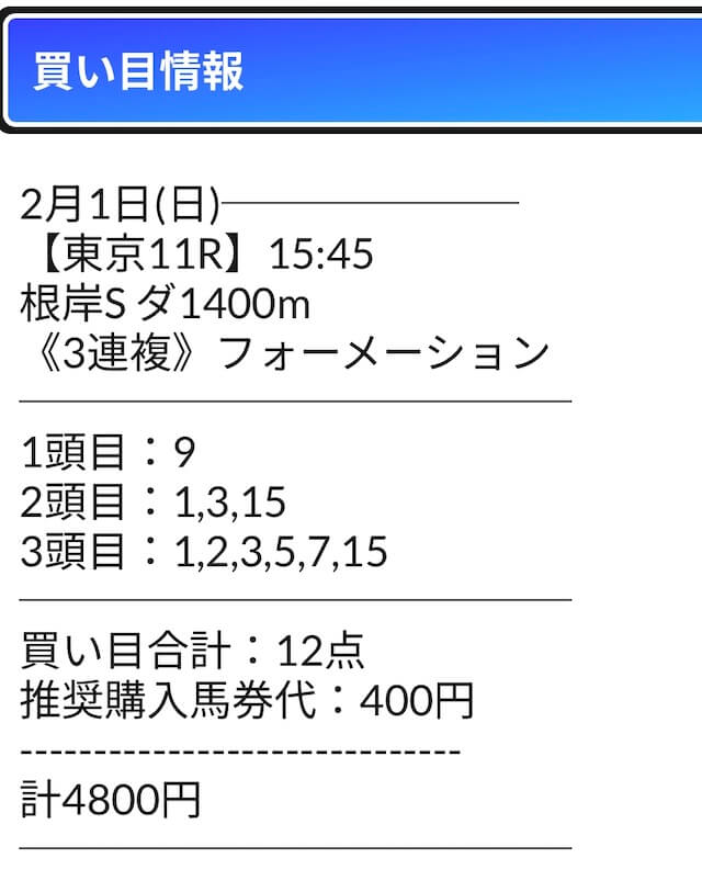 2024/02/01 【無料予想】01月は+6,600円を達成!