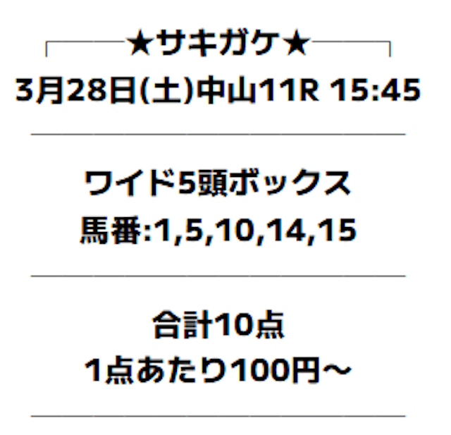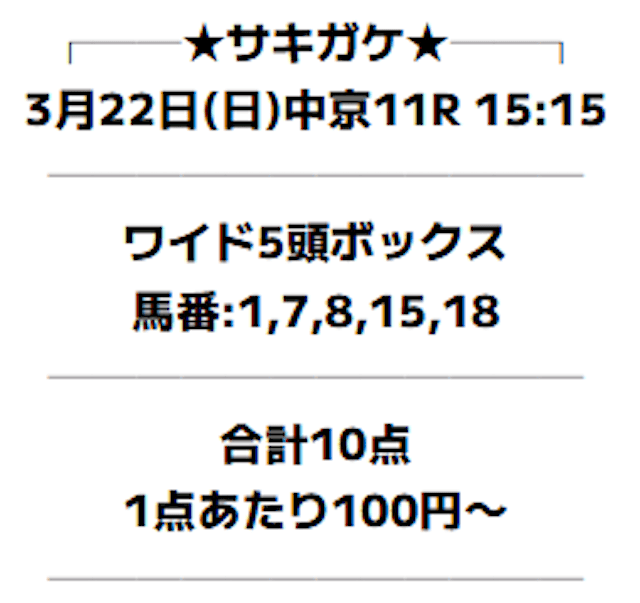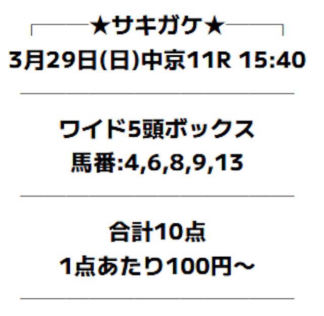 競馬予想サイト「サキガケ」の2026年3月29日の有料予想買い目
