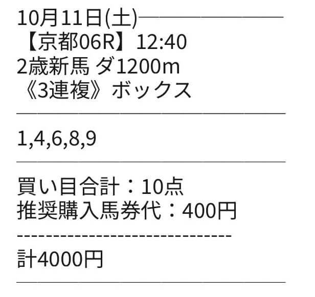 | ワイド | 6-9 | 9.3 | 10 | 不的中 |