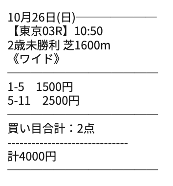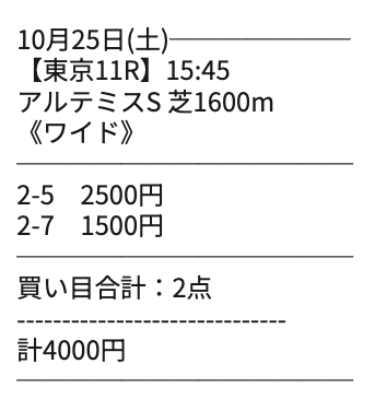 | ワイド | 2-6 | 13.4 | 15 | 不的中 |