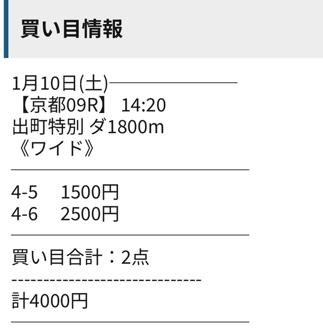 | ワイド | 4-6 | 1.4 | 1 | 的中 |
