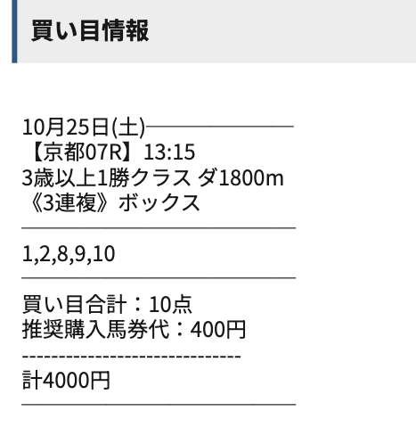 - 11月30日京都10R3連単1,091,250円