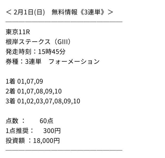2025/02/01 【無料予想】01月は+1,980円を達成!