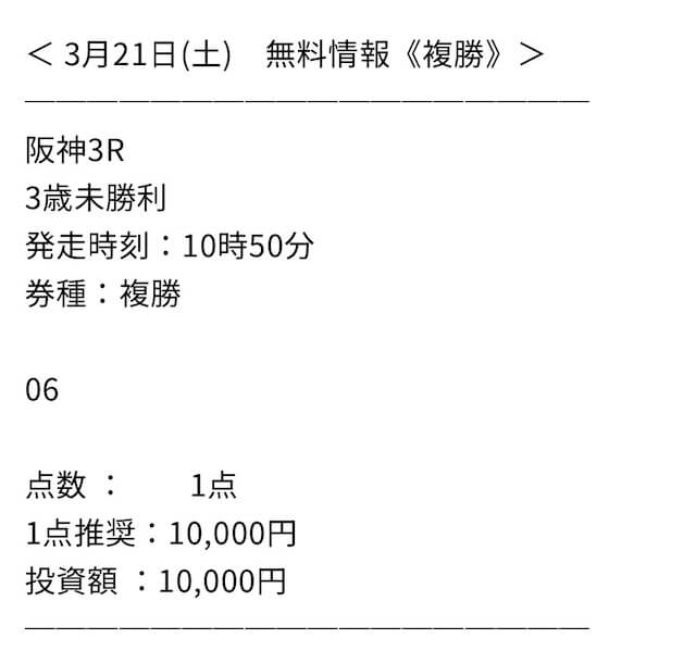 5.0匿名さん20代 男性 職業:トレーダー◎良い点投資競馬投資の観点から考察するにここの的中レベルなら本当に運用として利益をあげられると判断し、利用しております。 不的中のケースも確かにありますが、回収率が非常に高く、収支プラスで推移しております。 今後も継続していきます。 - 2023.07.7