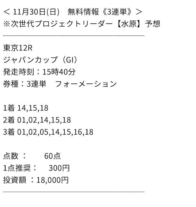 予想に参加した結果、無料予想で30万円、有料予想では100万円以上もの払い戻しを獲得すること出来ている。