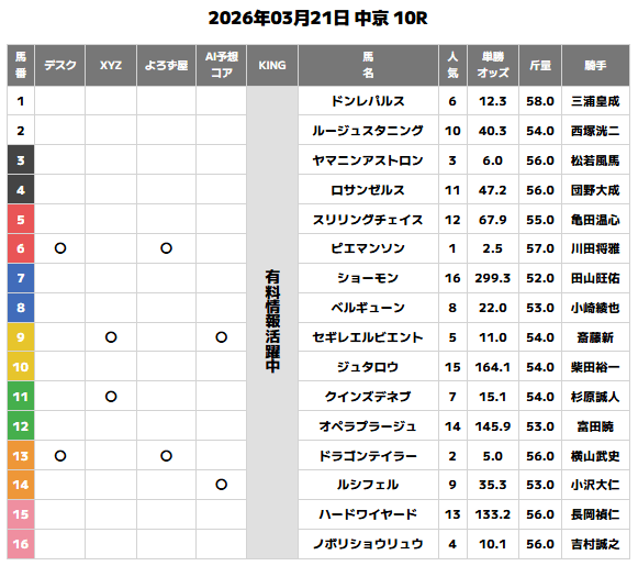 確かに横並びが特別強いわけじゃなく、鞍上も悪くない、このレースまでハマる条件を模索し続けていることからも何かありそうな雰囲気はまとっている。