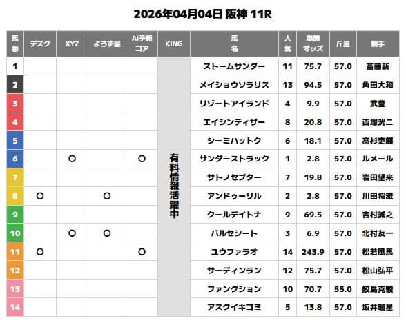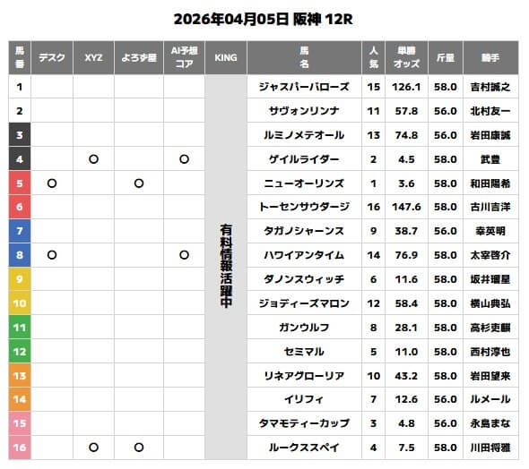 | 日付 レース名 | 04月05日 阪神03R 3歳未勝利 |