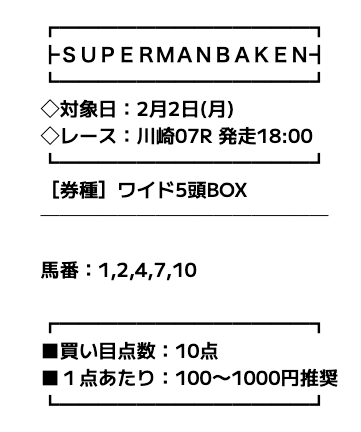 スーパーマンバケンの予想は印提供!
