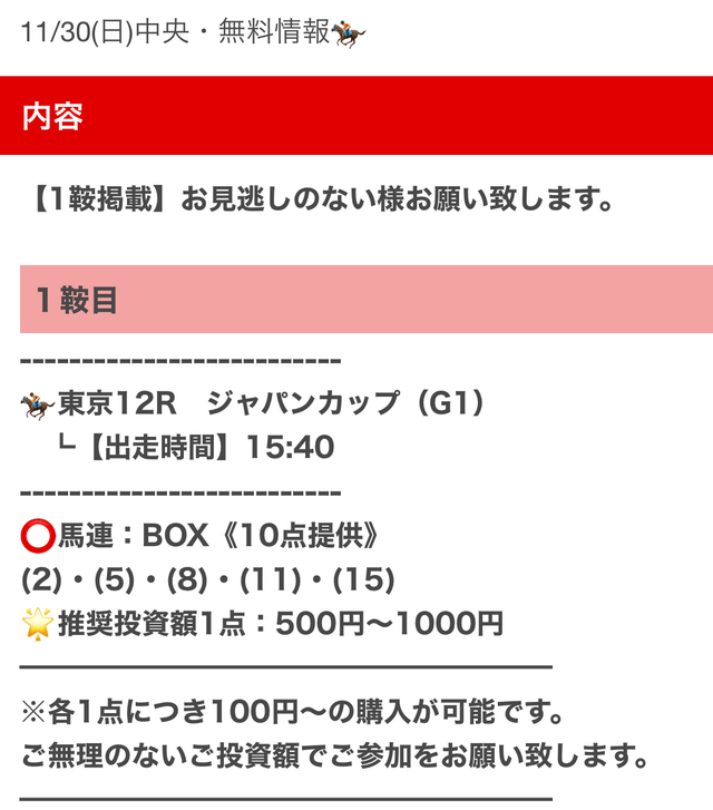 それでもまだ心配な方は、一点100円から賭ければ馬券代を抑えてリスクをかなり軽減する可能なため予想を使ってぜひ精度を確かめてくれ。