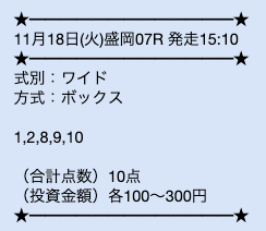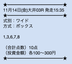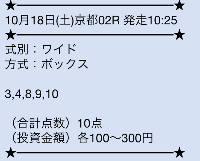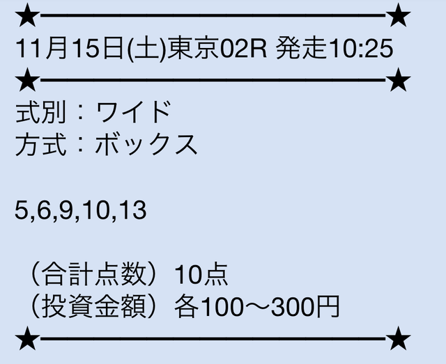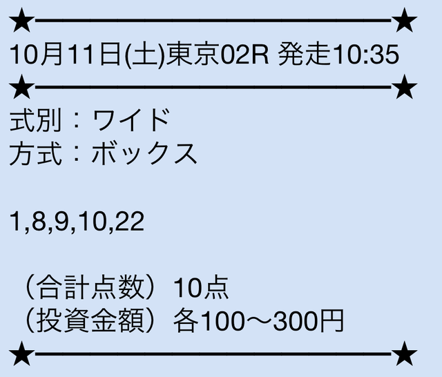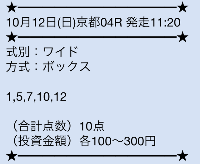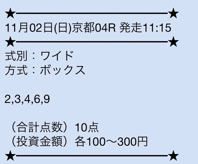無料情報って正直そこまで期待してなかったんですが、ここは当たる方ですね。 しかも毎日提供されてるので、ちょっとした楽しみにもなるのが嬉しいです。 馬券代を抑えながら感触をつかめるのは助かります。 ワイドBOX形式っていうのも意外と使いやすいなと思いました。 無料だけでも試す価値はあると思います。