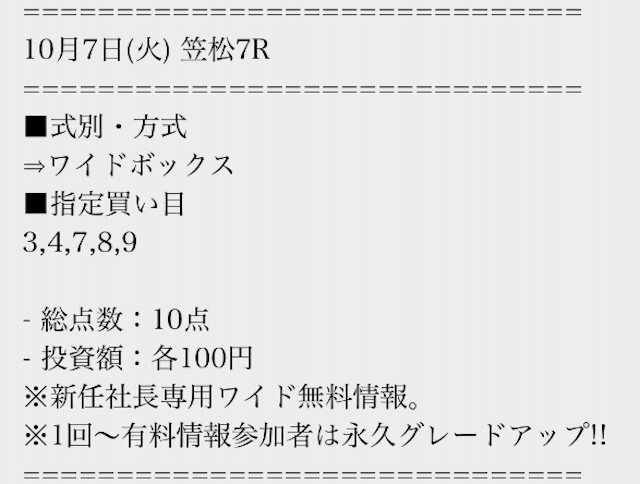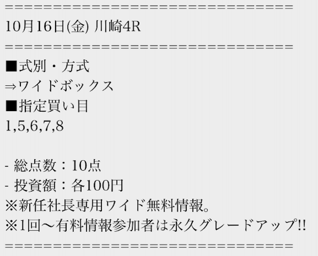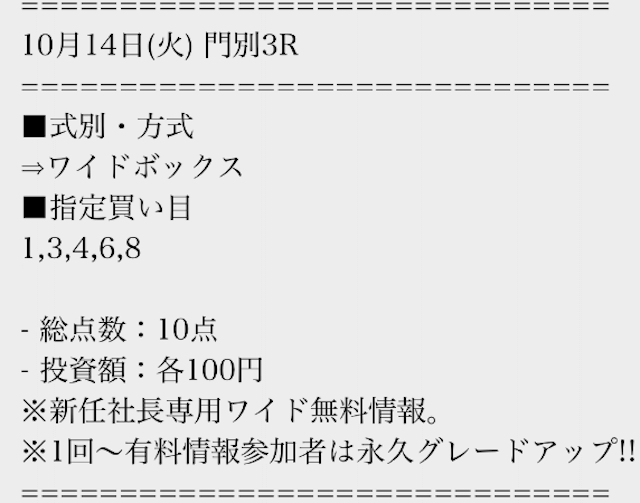 口コミの通り、的中率が高く何度も連勝しているのなら、軍資金が少なく当たらないリスクを極限まで減らしたい最初期にも使えるだろう。