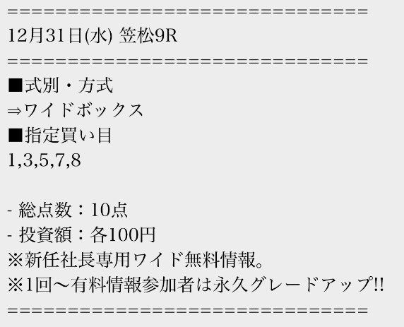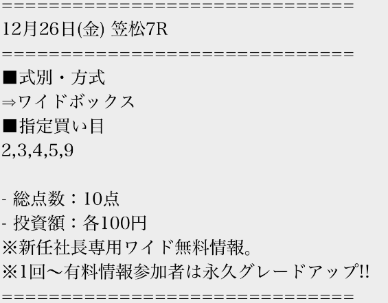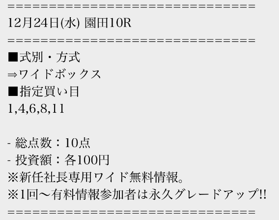 2026/01/01 【無料予想】12月は+59,500円を達成!