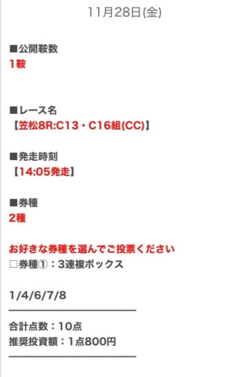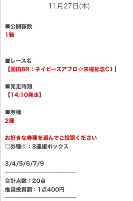 サイトの登録数は多いに越したことはないので、それぞれの買い目を参考にしてみてくれ。