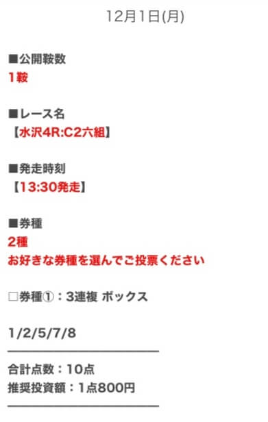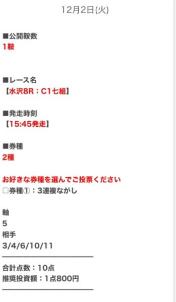 競馬で生活しているほどの実力を持った馬券師たちが、あらゆる情報を徹底的に精査し、買い目を構成。