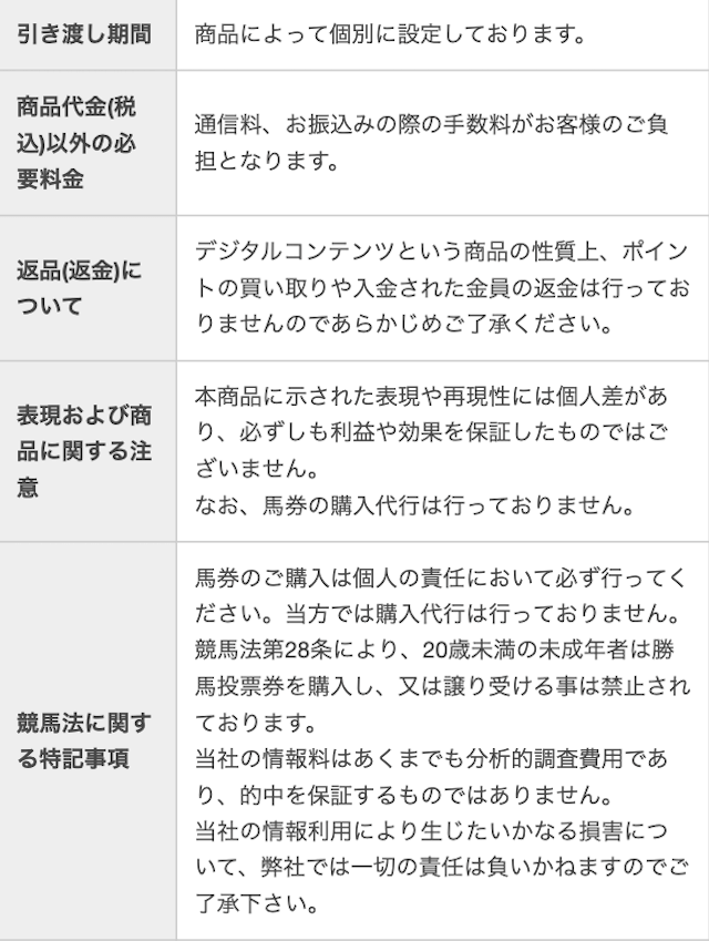 | ⭕ | 的中実績に捏造やおかしい点はないか。 | サイトに掲載の的中実績に書いてあるレースの馬券売上と控除率から払い戻しが現実的に可能かどうか確認、問題ないと判断できた。 |
