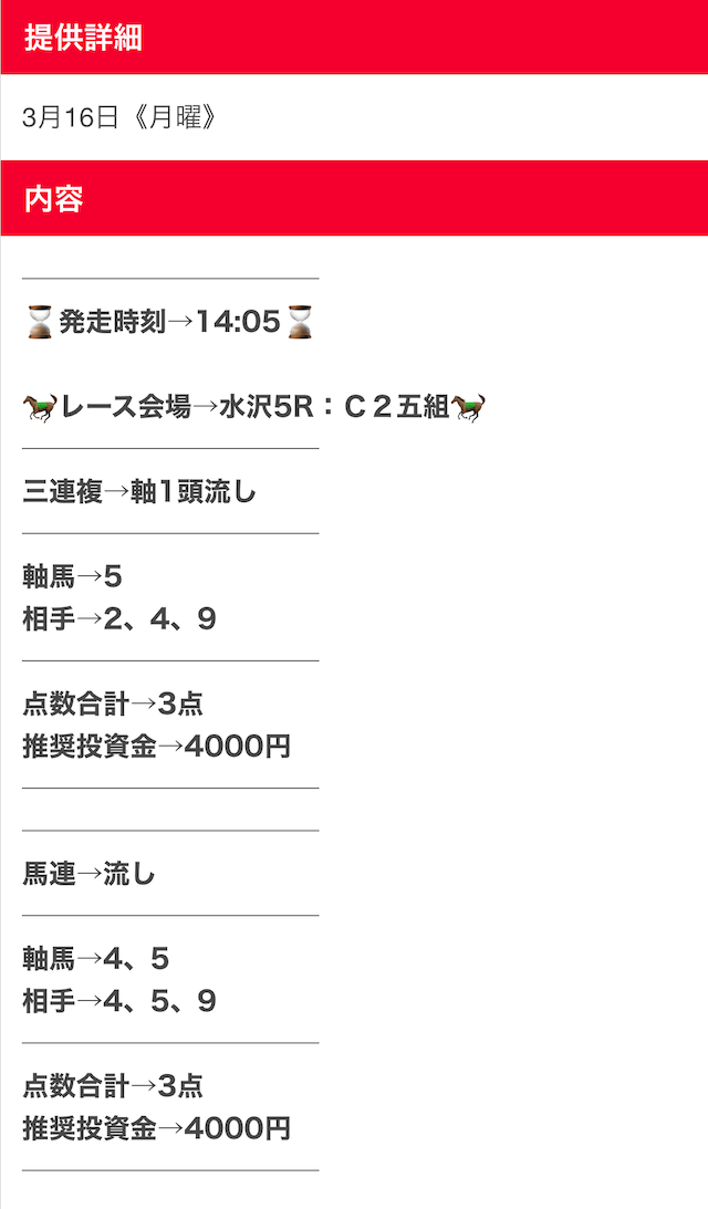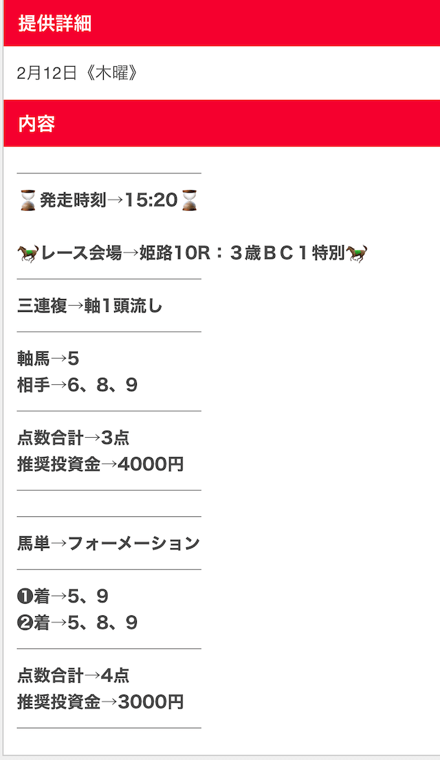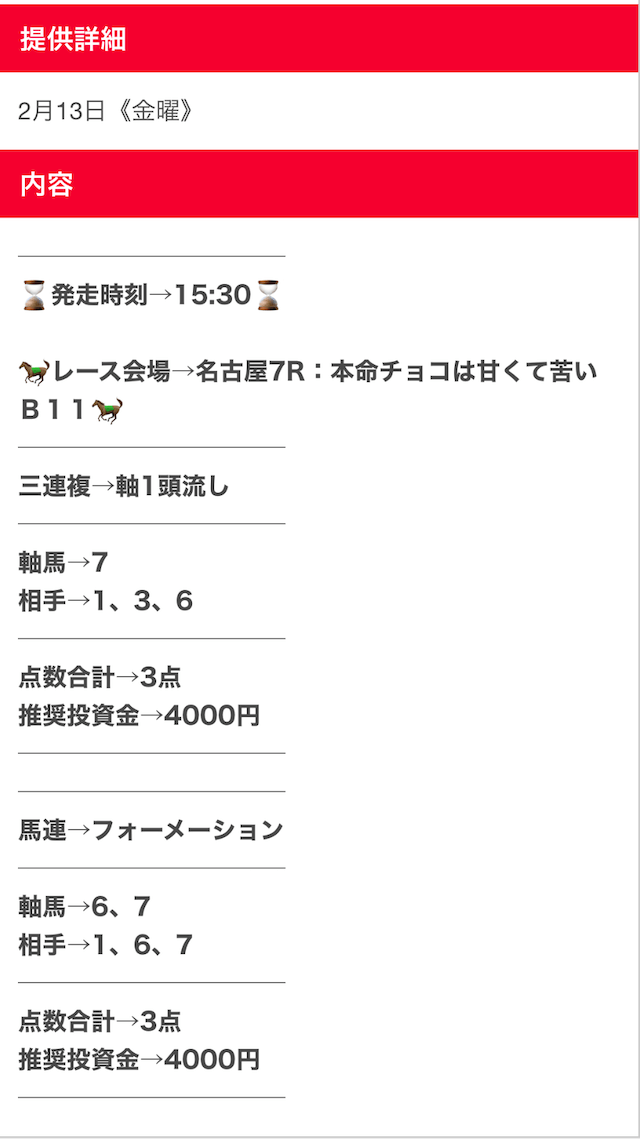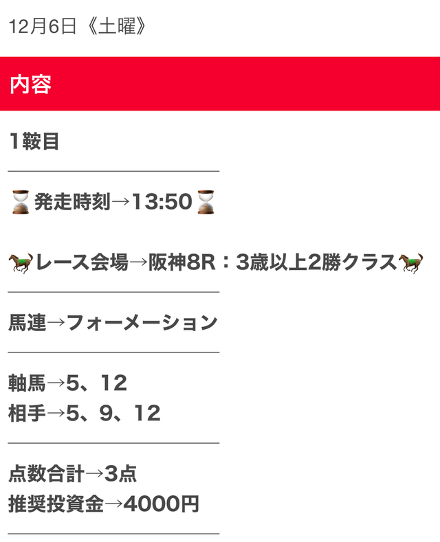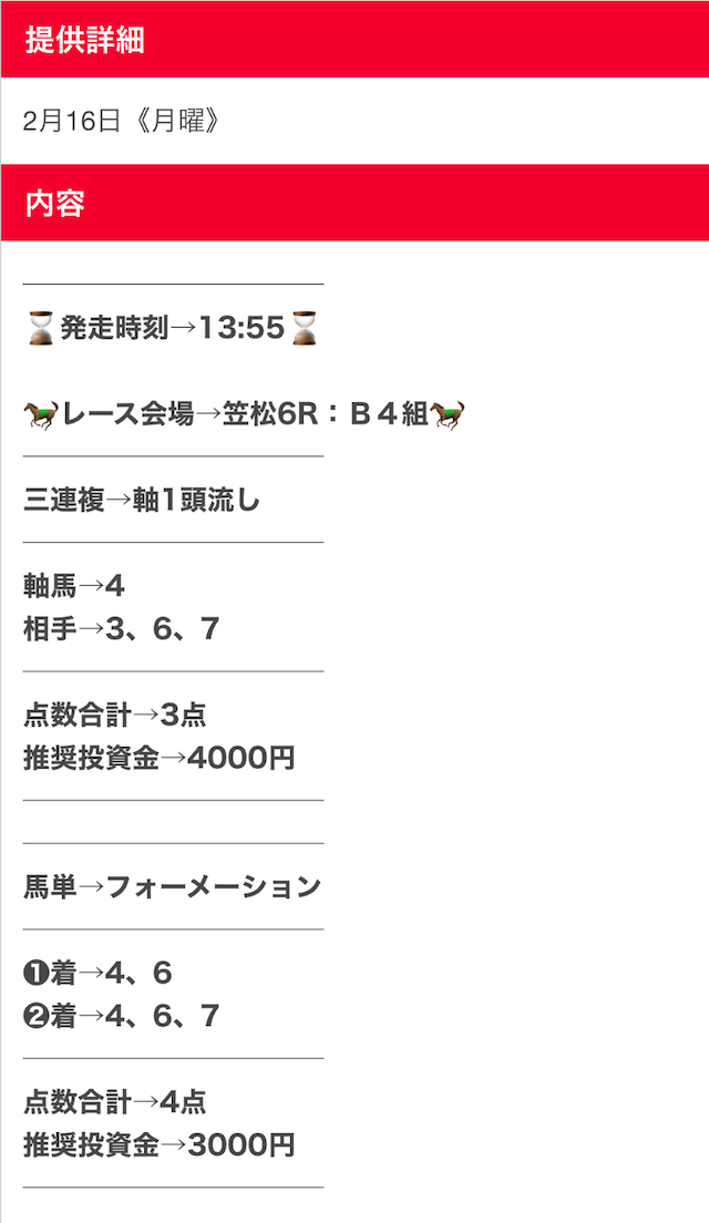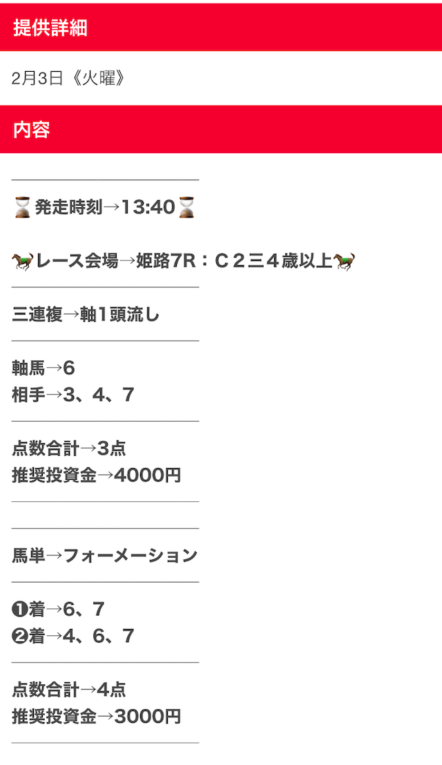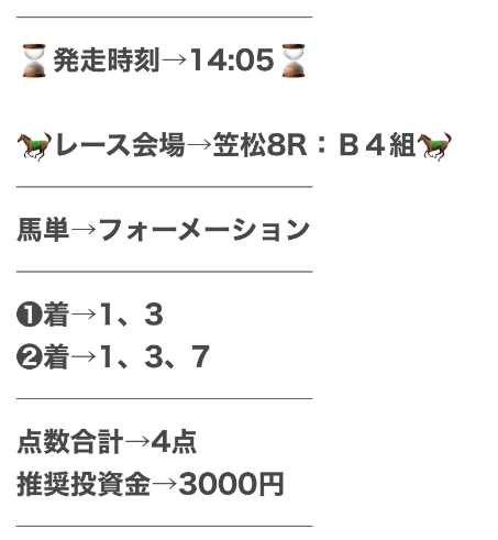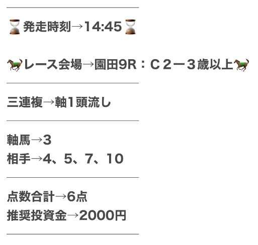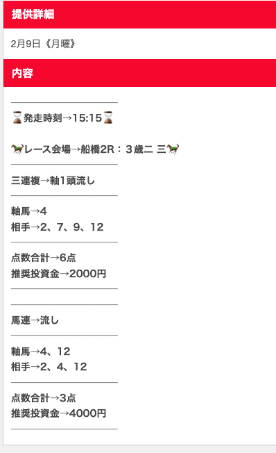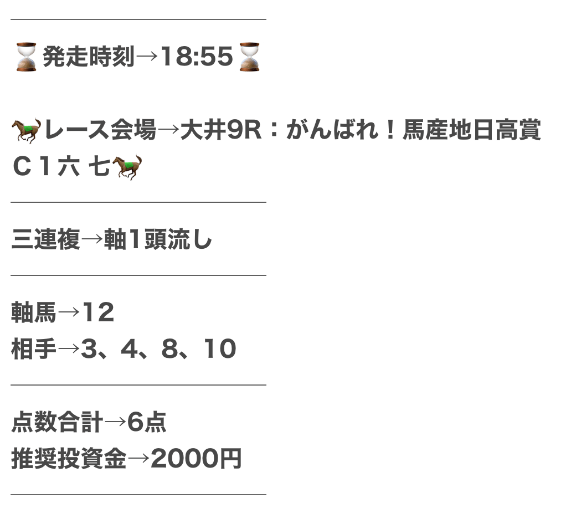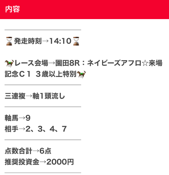 仕事や家事などで、どんなに忙しい人たちでも副業として使えるように、日々勝つための予想を提供しているらしい。