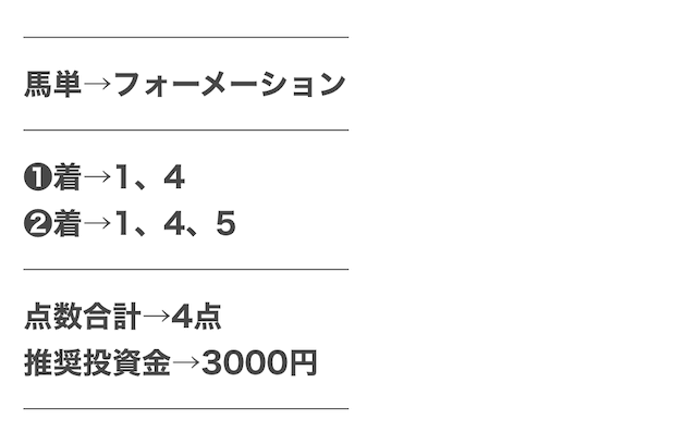 5.0匿名さん20代 男性 職業:◎良い点賭け方が好きワイドで勝負する時に、2点予想があって1点あたりの馬券代が2,500円。ワイドの基本的に配当が低いけど、人気決着になっても掛け金が高いおかげで、高い払い戻し受け取れる。