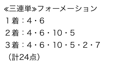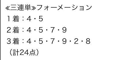 | 馬連 | 4-7 | 9.1 | 5 | 的中 |