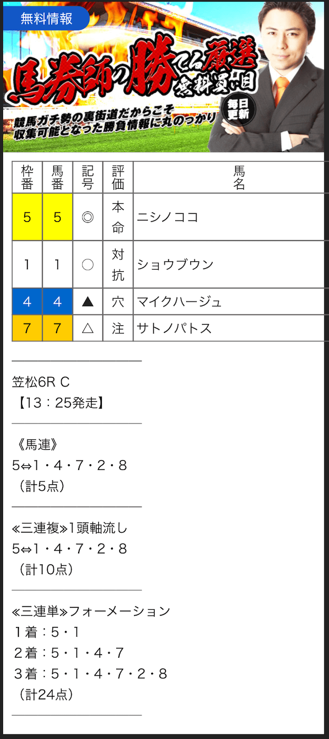 サイトの登録数は多いに越したことはないので、それぞれの買い目を参考にしてみてくれ。