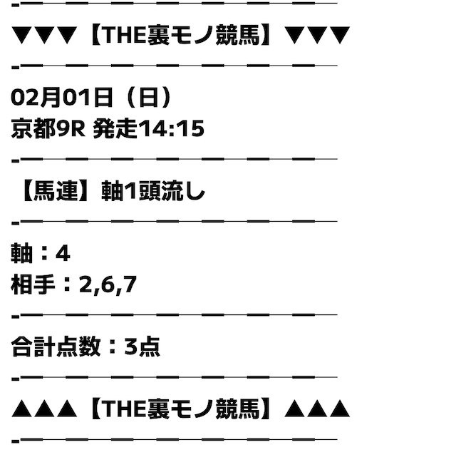 2026/02/01 【無料予想】01月は+61,700円を達成!
