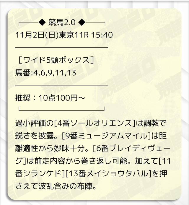 2025/11/01 【無料予想】10月は+7,300円を達成!