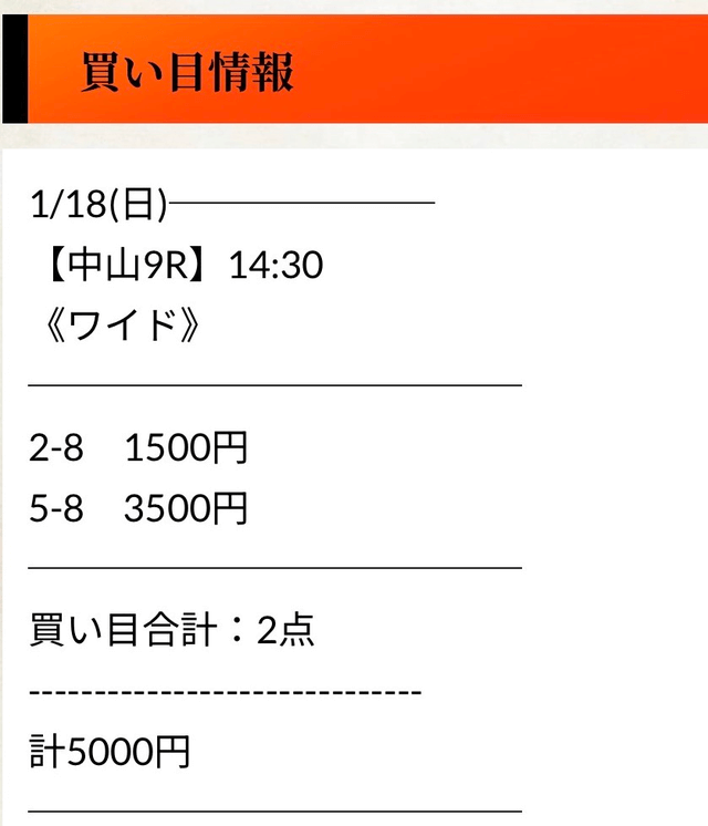 - 01月18日中山10R3連単809,100円